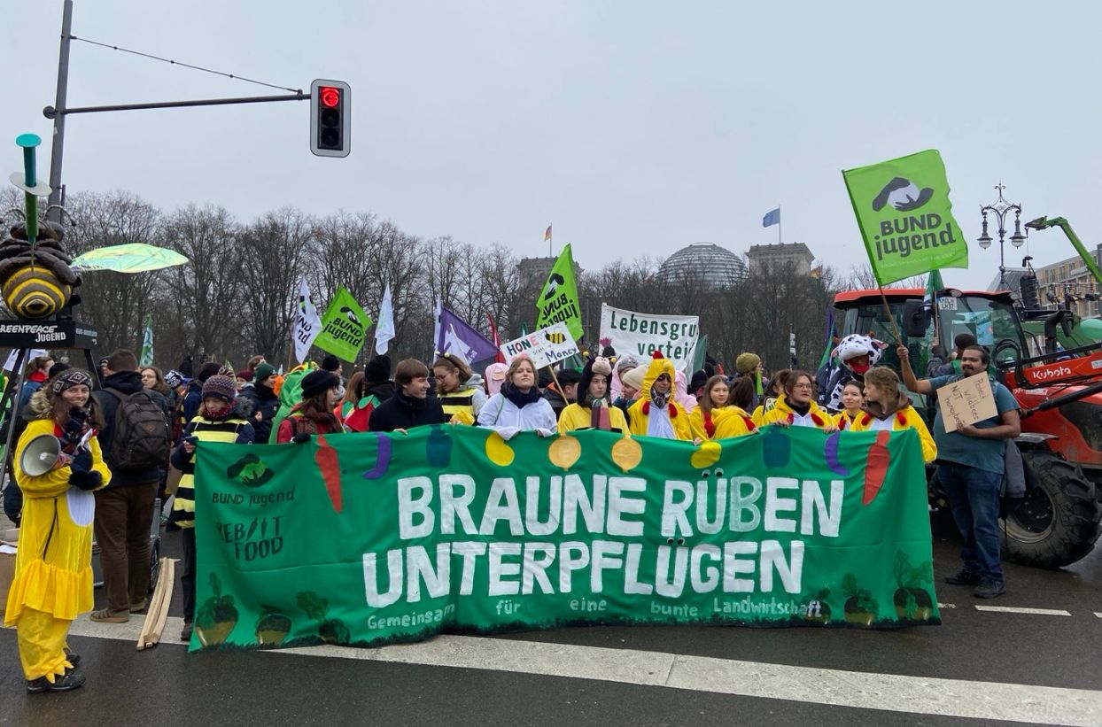Beim diesjährigen Aktionswochenende zur „Wir haben es satt“ vom 16. Bis zum 18. Januar haben wir in Berlin Haltung für eine sozial-ökologische Agrarwende gezeigt!!